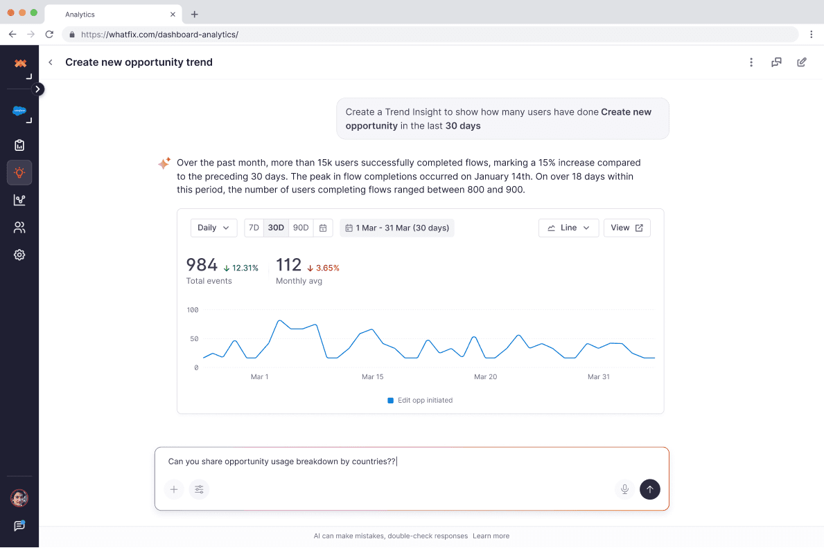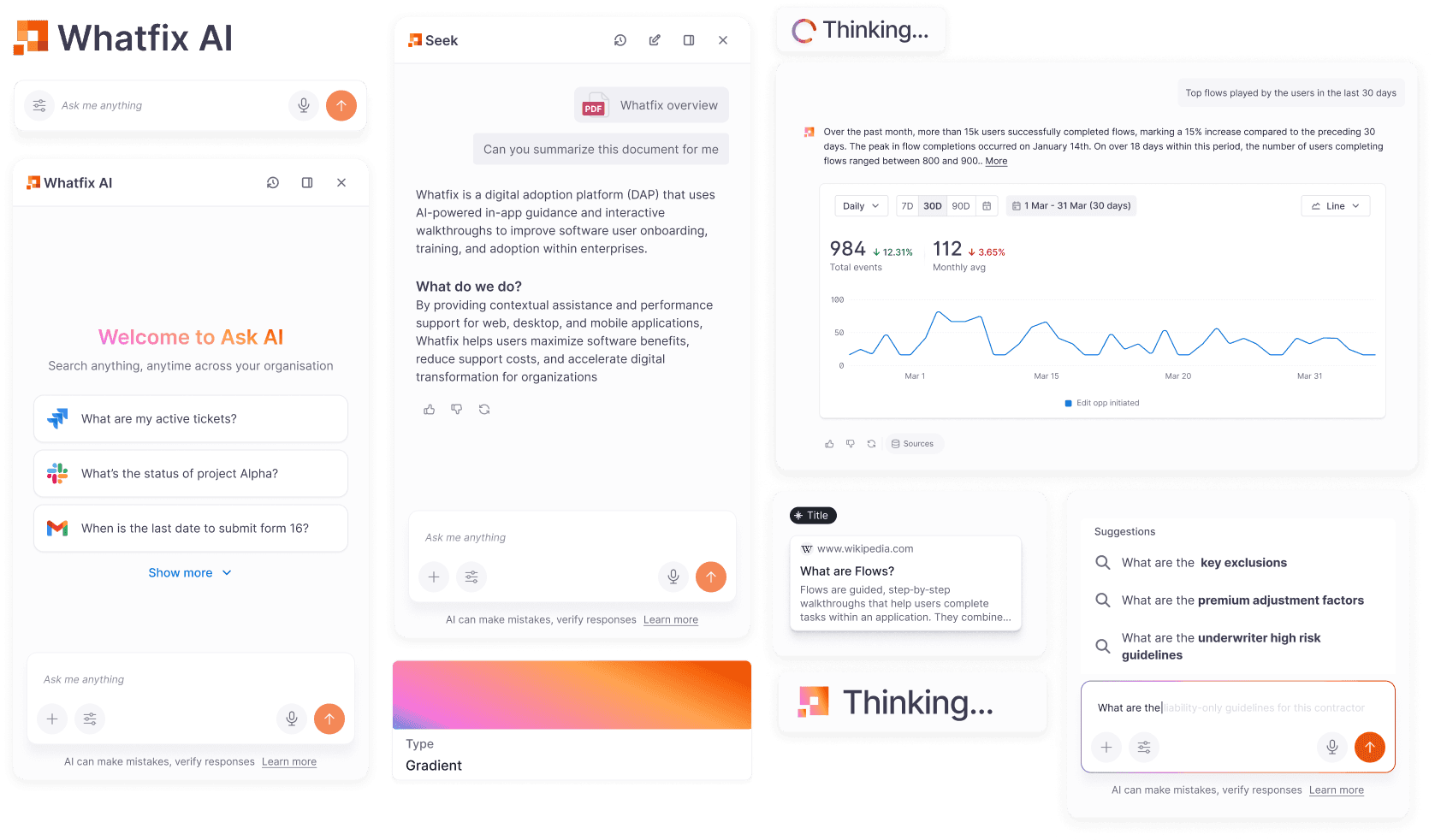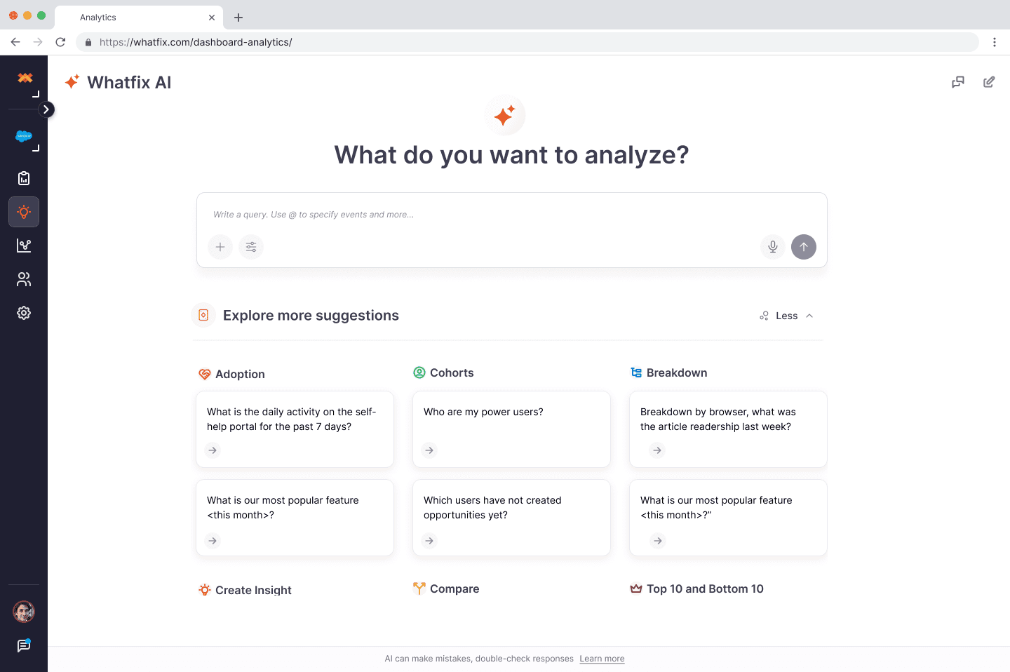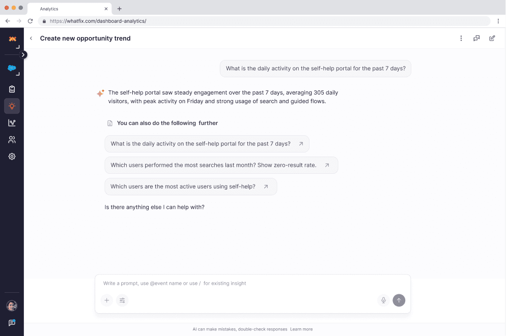 " How might we evolve Ask Whatfix AI from a question-answering tool into a trusted decision partner that guides users from intent → insight → action, without requiring analytics expertise? "