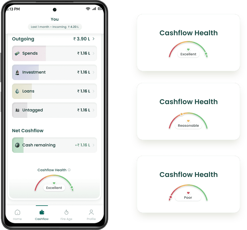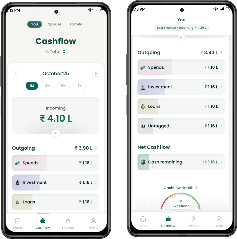 Finny Cashflow helps users understand their income, expenses, and savings surplus/deficit, forming the foundation for accurate FIRE (Financial Independence, Retire Early) projections.