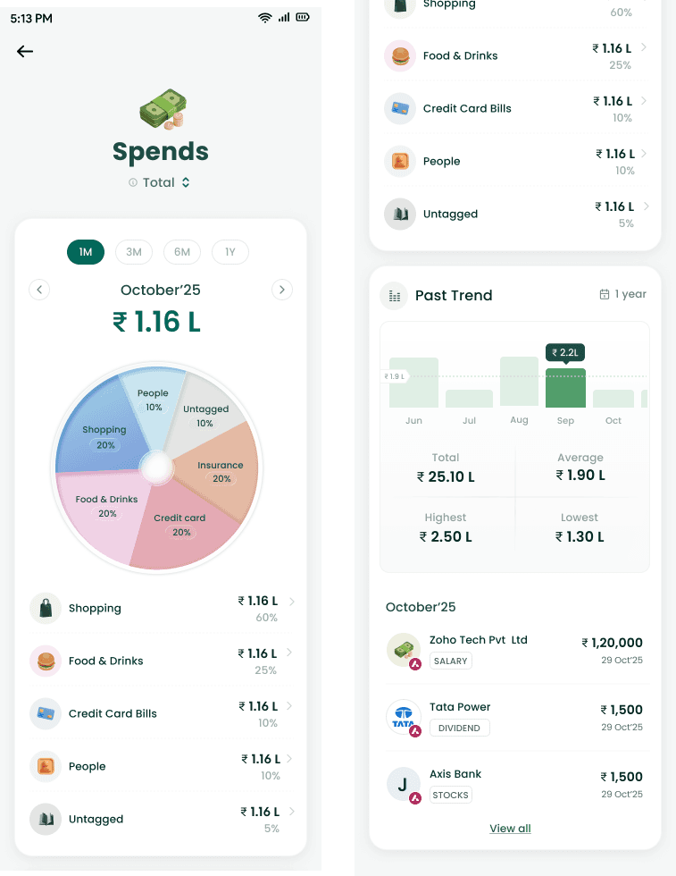I led the end-to-end design of the Cashflow experience, from problem framing and system design to execution and iteration. The work directly supported onboarding, long-term engagement, and advisory accuracy.