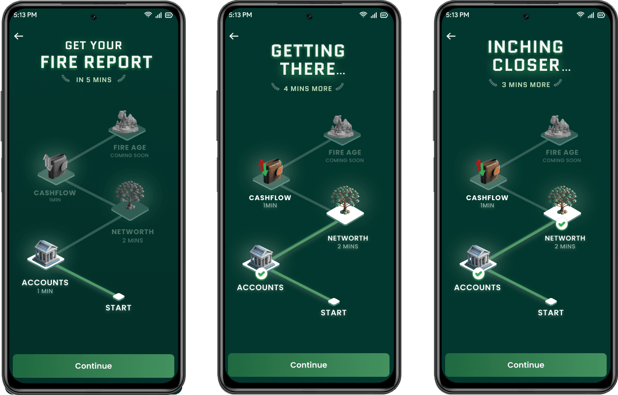 Users found increasing value at every stage of the process, beginning with net worth clarity, moving into cashflow visibility, and culminating in the calculation of their FIRE age, with each milestone reinforcing the importance of the onboarding experience.