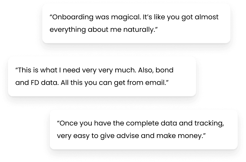 There’s strong demand to pull in PF, insurance, and car data to complete the picture (PF fetch is coming up in the next few days)
